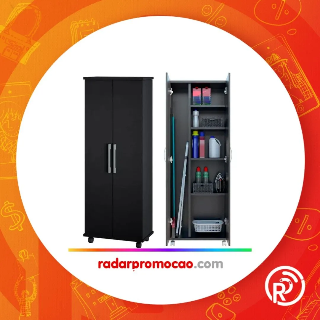Armário Lavanderia 2 Portas com Espaço para Vassouras Multiuso com Rodinhas