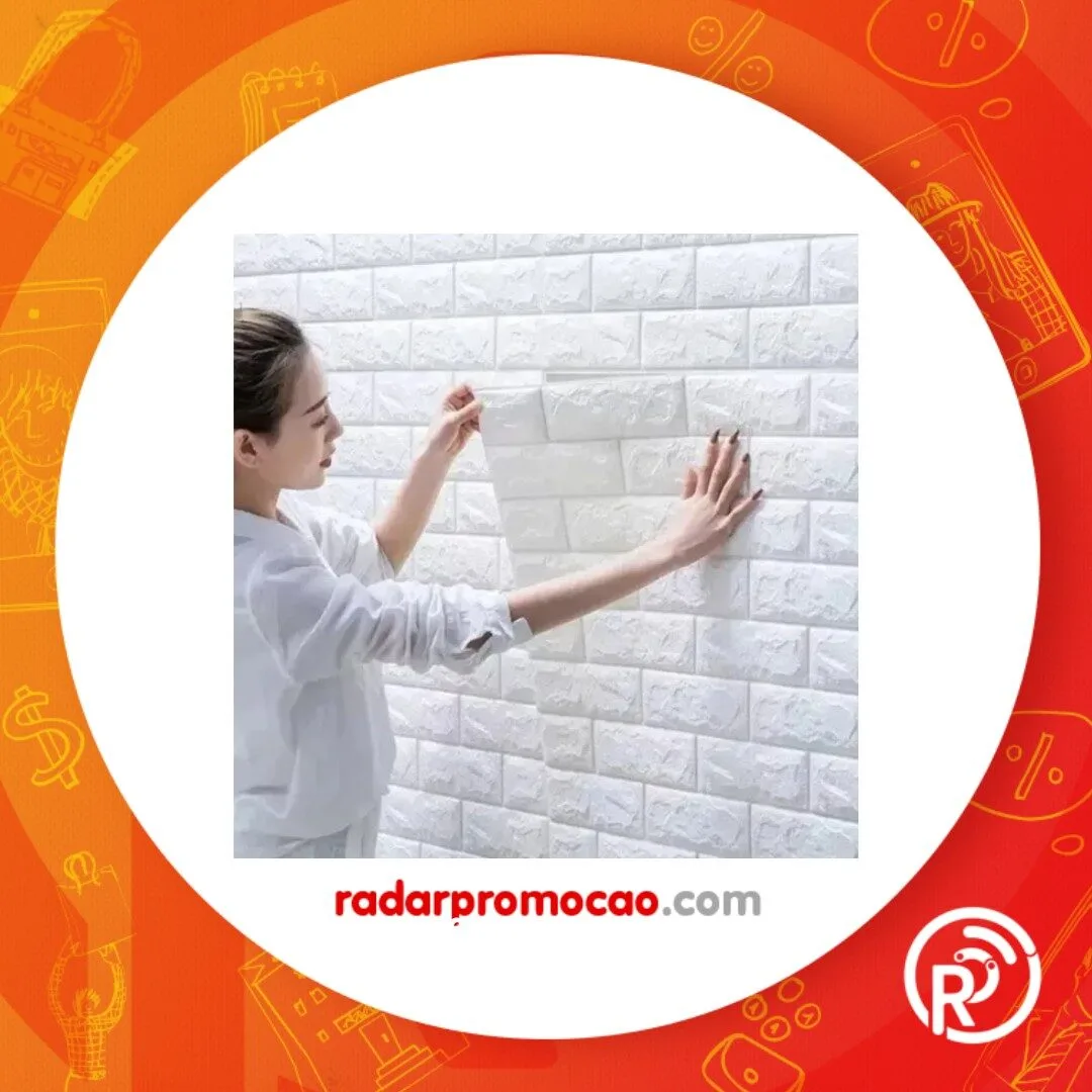 10 Placas Tijolinho 70x77cm Revestimento 3D Efeito Geométrico Auto colante