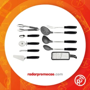 Jogo de Utensílios Tramontina Utilità com Lâminas em Aço Inox e Cabos em Polipropileno Preto 10 Peças