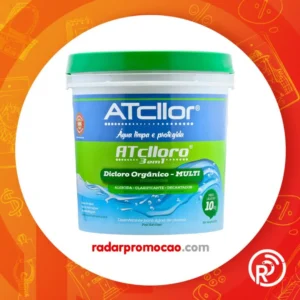 AtCllor, Cloro multifuncional 3 em 1, Orgânico, Concentrado e estabilizado para piscina, Clarifica, Algicida, Decanta, AtClloro, Teor de ativo 36,47%, Granulado, 10 Kg, Verde