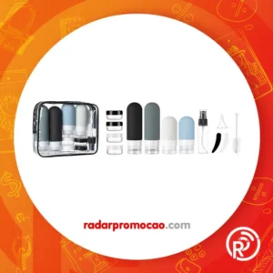 Kit de Frascos de Viagem, 17 Itens, Silicone e Plástico, com Necessaire Transparente, 60ml e 90ml (Negro)