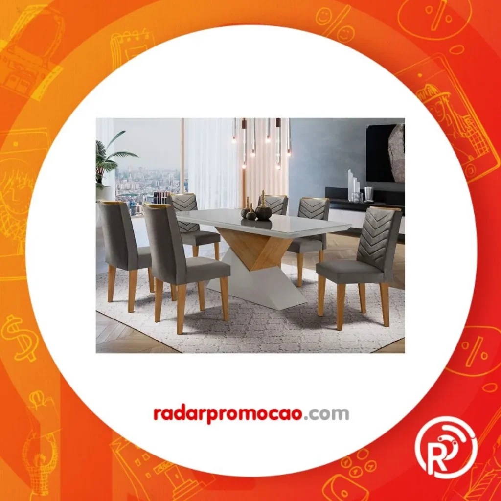 Sala de jantar Aster 180 Tampo em MDF e Vidro com 6 Cadeiras Liz Moderna