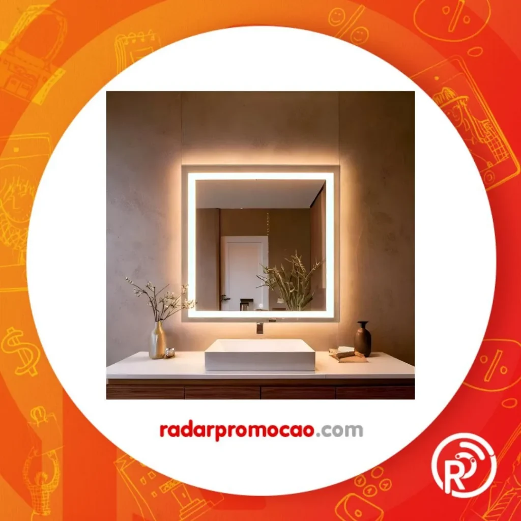 Espelho Quadrado Led Jateado 110×110 Cm Touch-screen Moldura Neutro