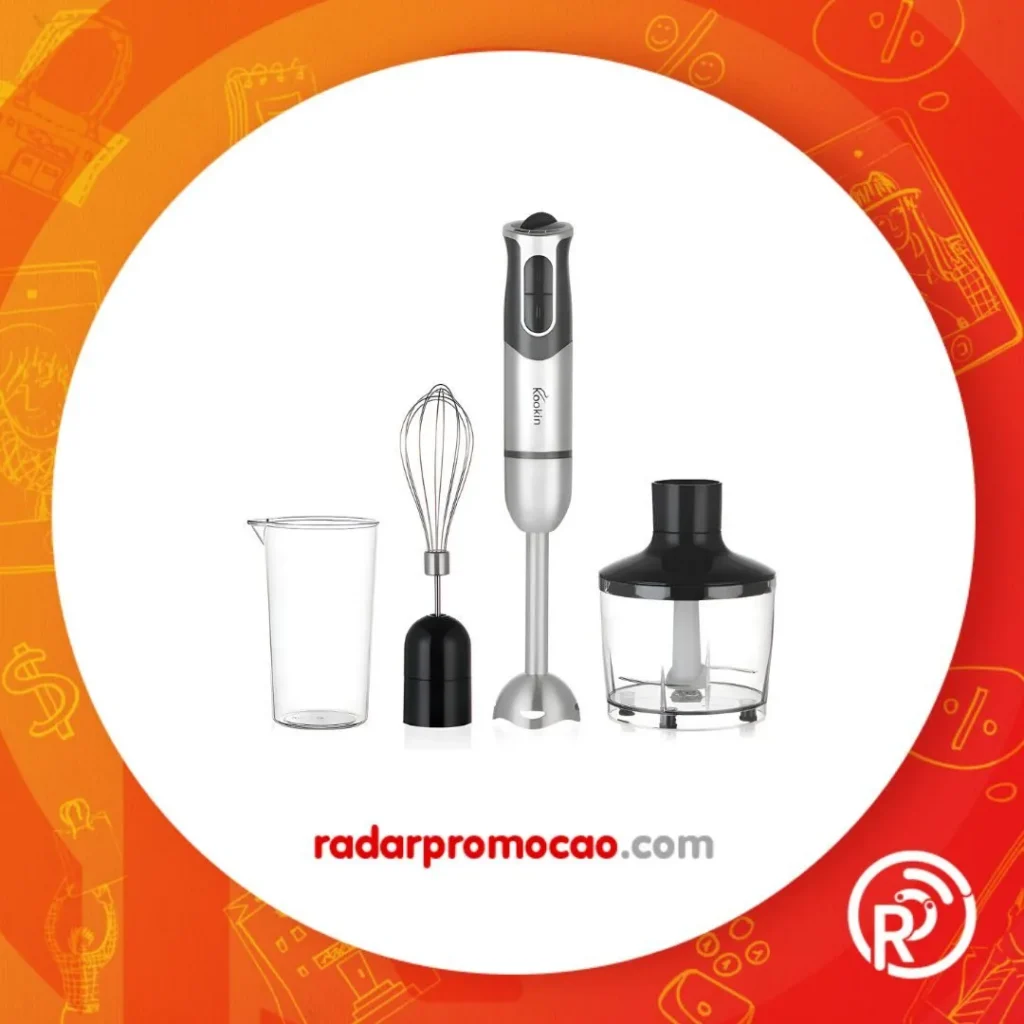 Mixer de Mão Portátil 8 Velocidades 3 em 1 Inox 800W KOOKIN Multifuncional com Função Turbo corpo em inox lâminas em aço inox 304 grau alimentício fácil de limpar ideal para smoothies e sucos