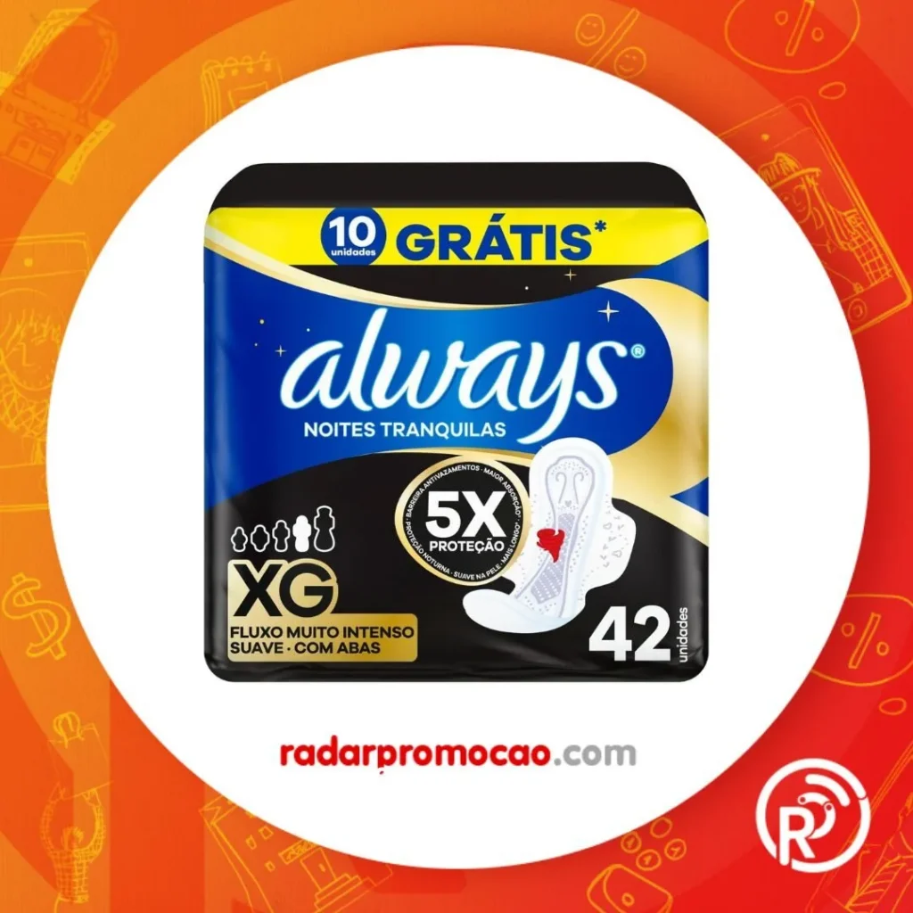 Always Noites Tranquilas Suave, Absorvente Tamanho XG, 42 Unidades