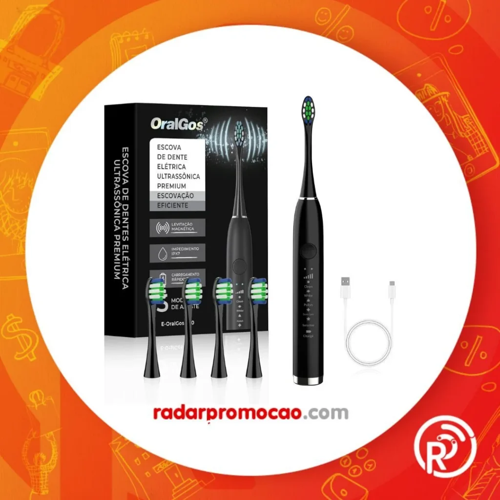 Escova Dental Elétrica para Adulto, 5 Modos Ultrassônicos, Limpeza Profunda, com 4 Cabeças Substituíveis, Recarregável e Portátil, 1 Unidade