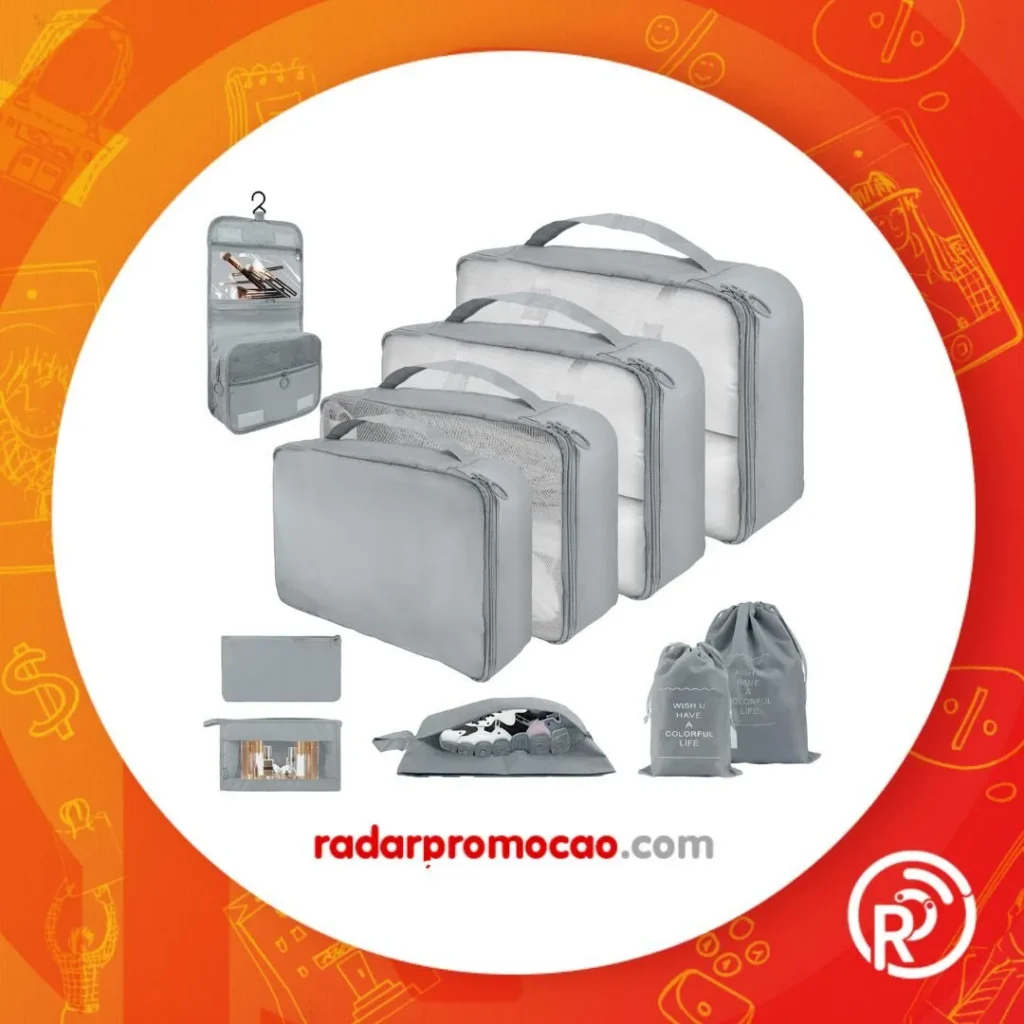 KIT 10 Organizador de Malas para Viagem: Kit Completo de Organização – Inclui Bolsa Organizadora e Necessaire Feminina-Organizadores de Bagagem para Viagem-VANOVA (CINZA)