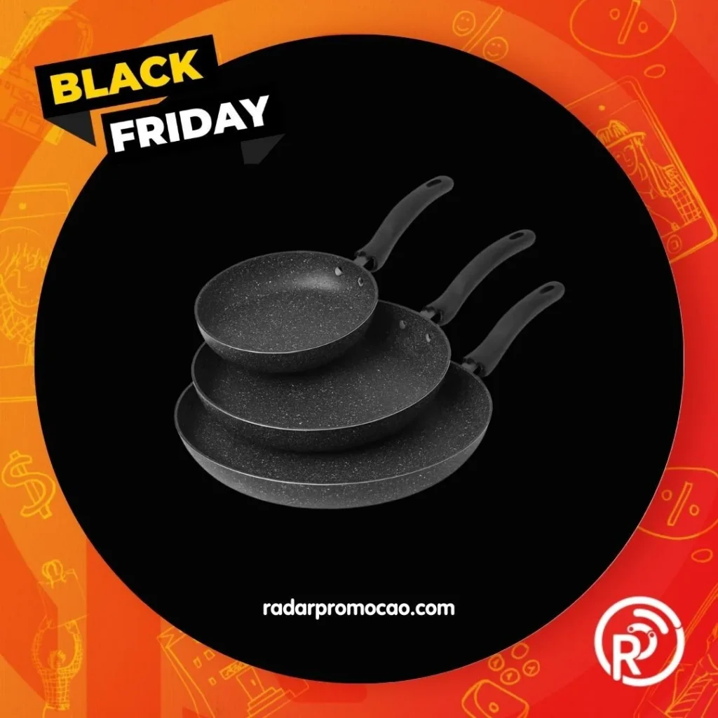Jogo De Frigideiras Francesas 3 Peças 14 18 24cm Preto Nacional – Alumínio Nacional