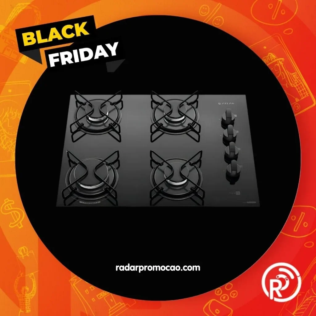 Cooktop 4 Bocas Atlas Agile Up Mesa Vidro Mega Chama Bivolt