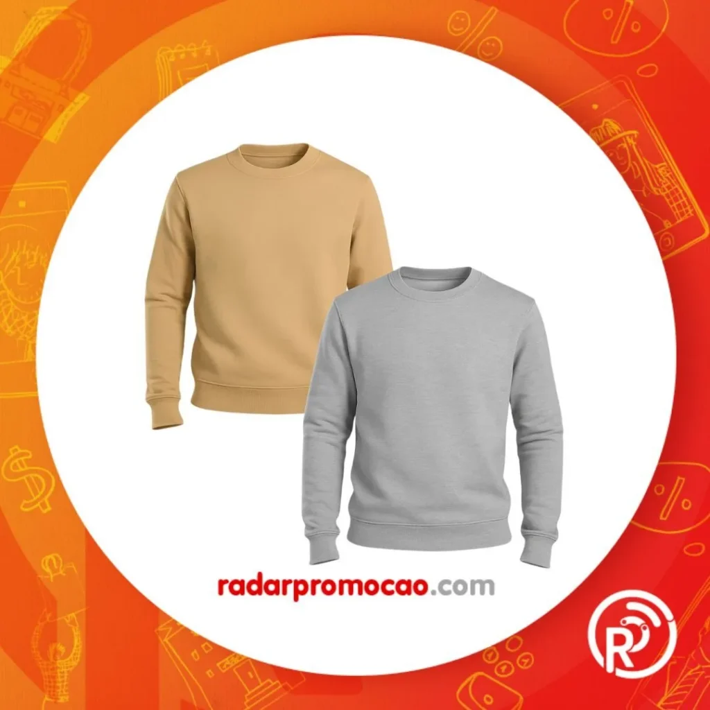 Kit 2 Blusa Moletom Masculino Gola Careca Algodão Premium