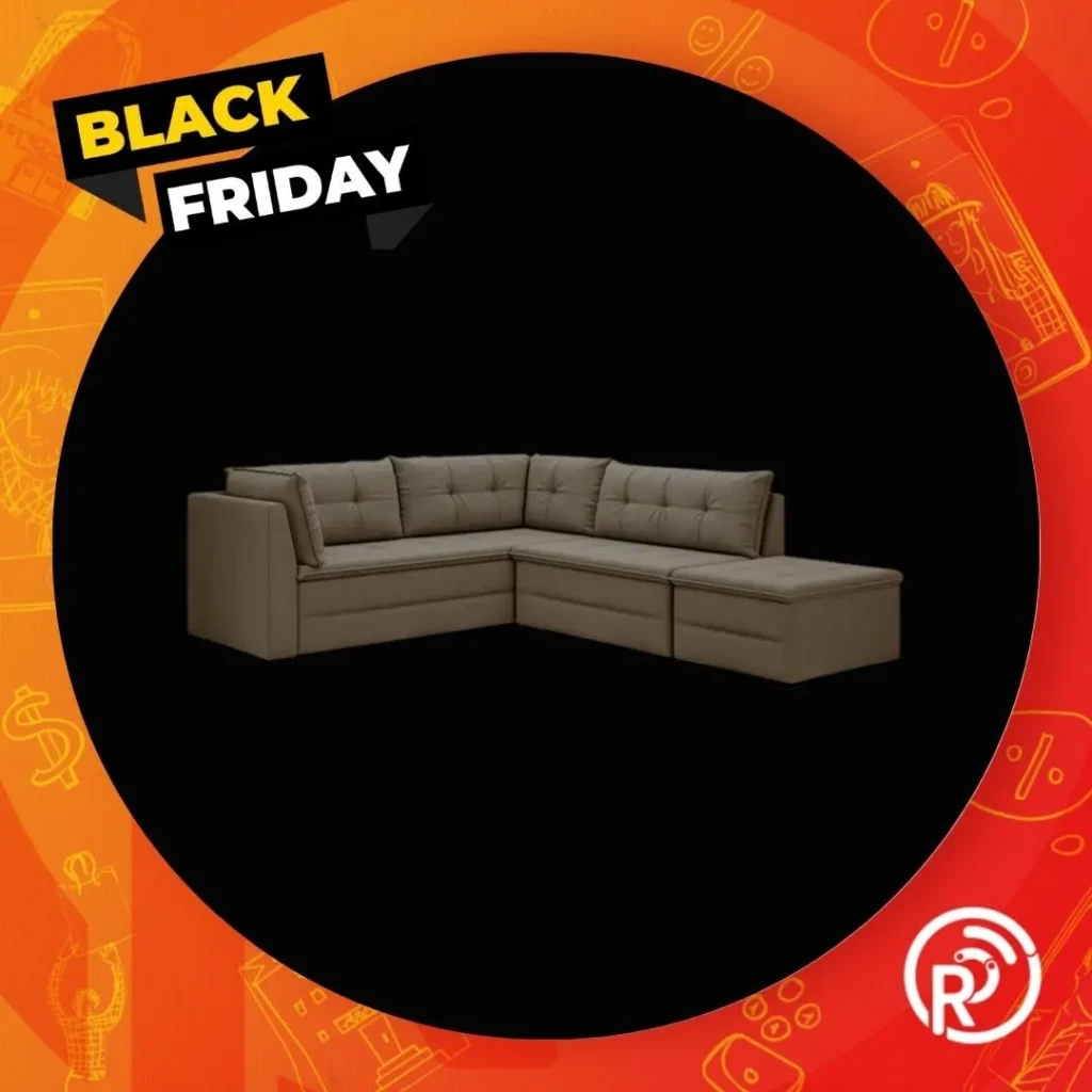 Sofá de Canto 6 Lugares com Puff Veluplus Vegas