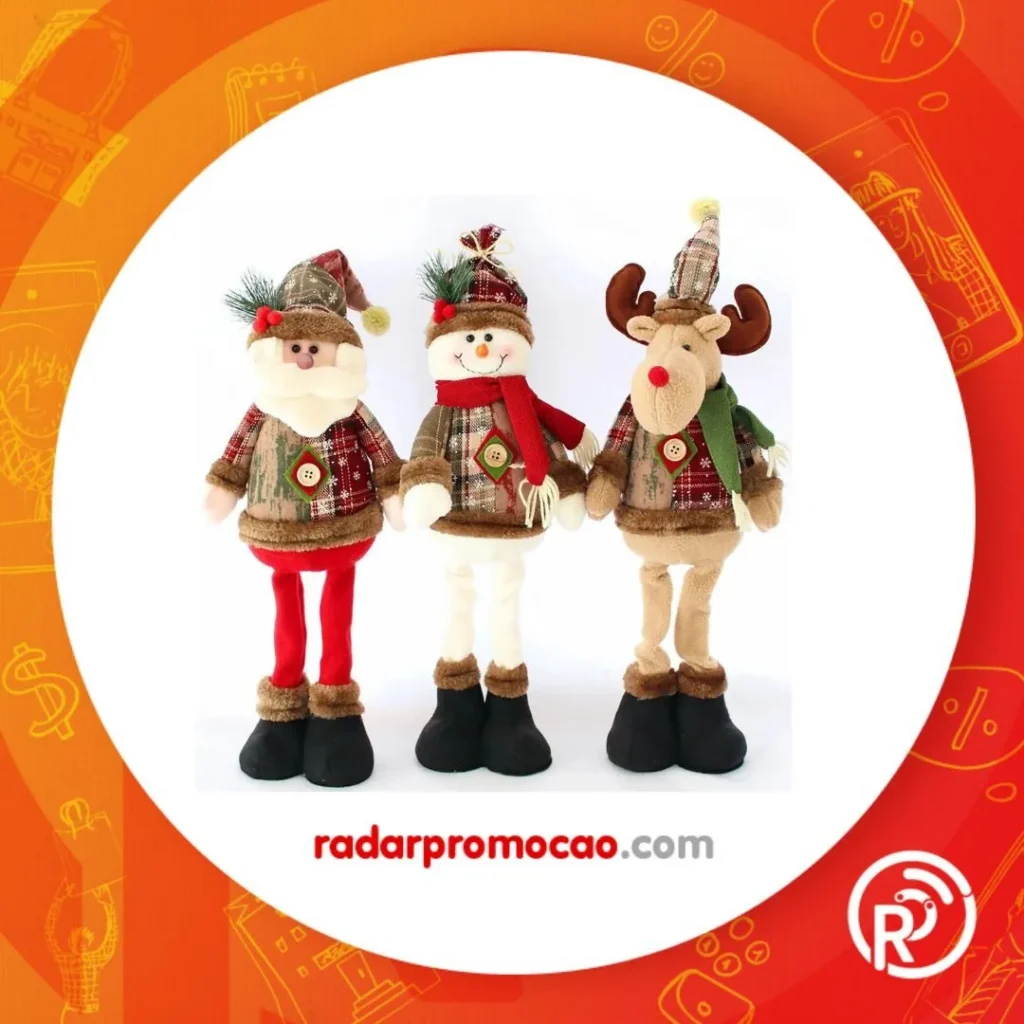 Boneco de Neve, Rena e Papai Noel – Kit com 3 Bonecos Decorativos de Natal