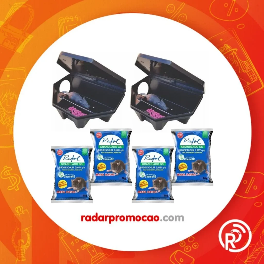 kit Eficiente Eliminar Ratos Ratol, 2 Porta iscas com 4 Saches