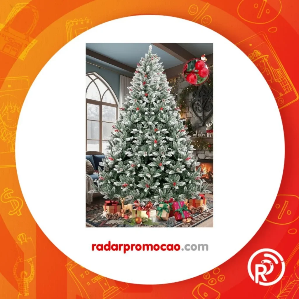 Arvore de Natal, 1600 Galhos, Árvore de Natal 2,4 m, Arvore de Natal com Ramos com Efeito Gelado, Pinhas Naturais e Cerejas Realistas e Neve, Adequado Salas de Estar e Apartamentos e Escritórios