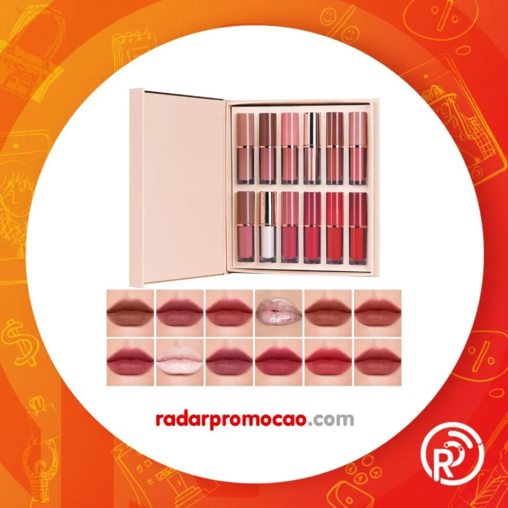 Batom Lip Liner Conjunto Batom liquido | Conjunto de Lápis para Lábios Matte 12 Cores