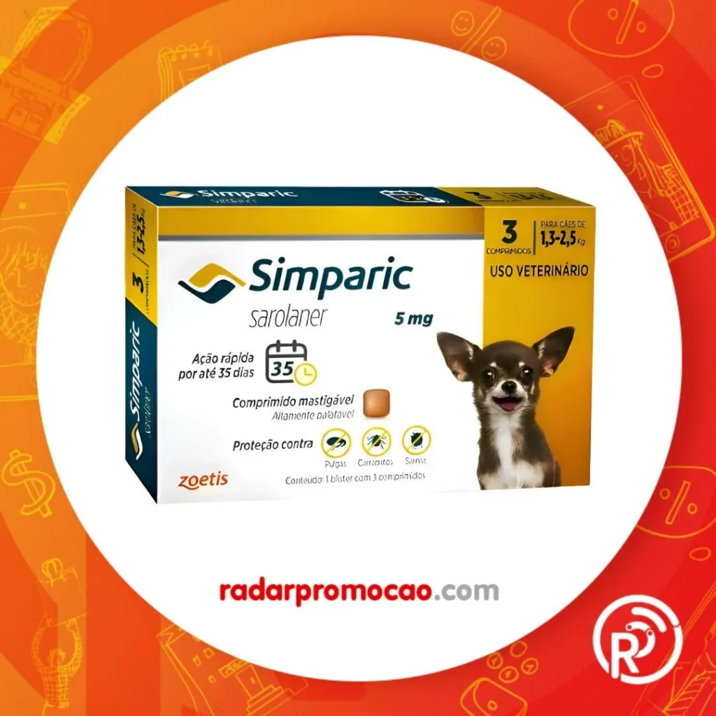 Simparic para Cães de 1,3 a 2,5Kg 5mg 3 comprimidos Zoetis