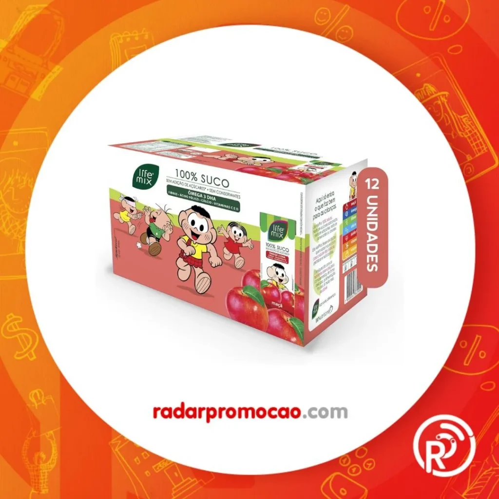 LIFE MIX Turma da Mônica – Suco de Maçã em Caixinha – 100% Suco, Sem Adição de Açúcares, Sem Conservantes e Corantes, Ômega 3 DHA, Vitaminas C e D, Cálcio, Fibras – Vegano – Pack 12 x 200ml