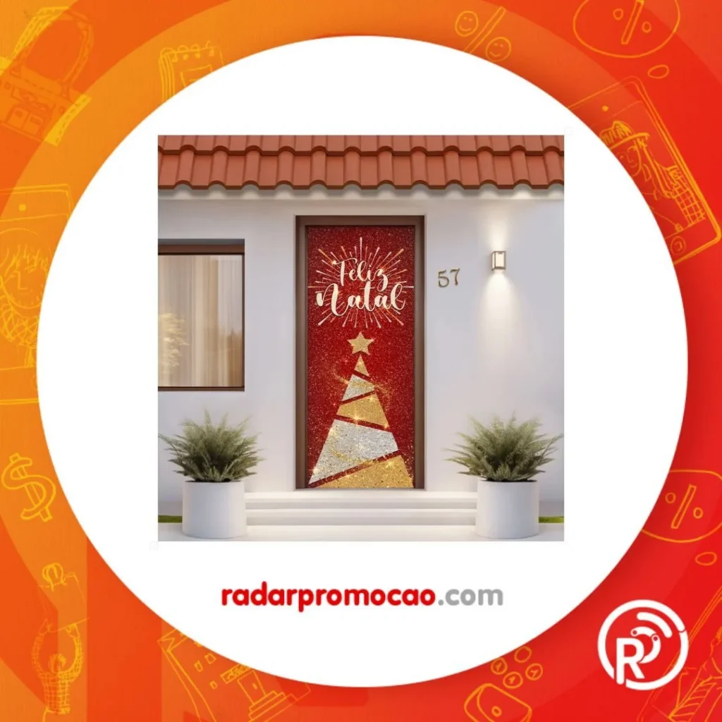 Capa De Porta Natal Glitter Decoração Home Decor Casa Em Tecido 0,85×2,10m Veste Fácil Criatema