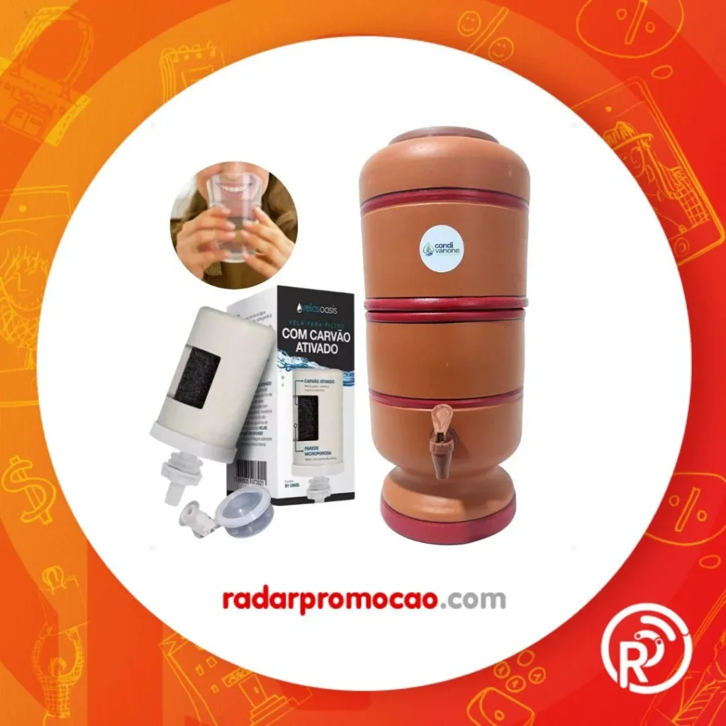 Filtro De Barro 3 Litros Total 6l – Vela Carvão Ativado Bóia Marrom