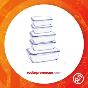 Kit Conjunto 5 Potes De Geladeira Hermético De Vidro Marmita Tampa Click (Azul)