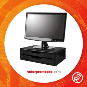 Suporte de Monitor 2 Gavetas, Mdf Preto (Black Piano) – Souza & Cia