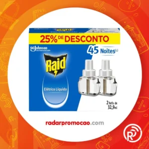 Raid Repelente Eletrico Líquido, 45 Noites, 2 Refis de 32,9ml