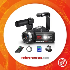 Câmera de vídeo digital 8K, 64MP,Transmissão WiFi, Zoom de 18X,Tela sensível ao toque de 3,0 polegadas, visão noturna infravermelha,64 GB, microfone externo, controle remoto, duas