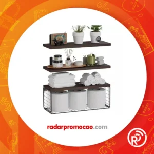 1 conjunto de prateleira de parede de madeira estruturada em ferro, prateleira multifuncional para cozinha, suporte para