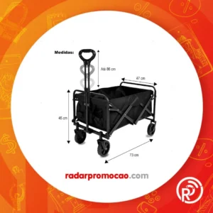 Carrinho Praia Dobrável Camping Suporta 100kg Carga Reforço Preto