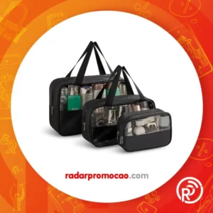 Kit Necessaire Transparente 3 em 1 Bolsa de Viagem para Maquiagem e Higiene Pessoal Unissex – Grande Capacidade, Organizador em PVC Impermeável, Ideal para Academia,